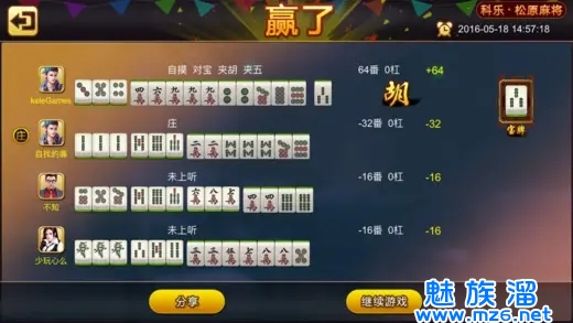 2.讲究战术:游戏不仅依赖运气,更考验玩家的判断力。需结合手中牌型、场上出牌节奏以及对手动向,灵活调整策略,合理选择吃、碰、杠、胡时机。
