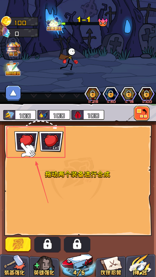 4、努力完成关卡任务获得丰厚奖励,解锁新场景和更高级的装备合成配方,不断提升角色能力和装备等级水平。