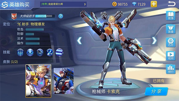 枪械师的被动是枪林弹雨,第五次普攻会触发4枚导弹,对于清兵或者对敌伤害,都是不错的。由于这个被动,需要第五次才能触发,所以枪械师需要一定的攻击速度,在出装上会体现出来
