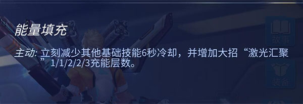 三技能是能量填充,立即减少一二技能6秒冷却,还能增强大招的层数,对打的时候使一二技能冷却非常快