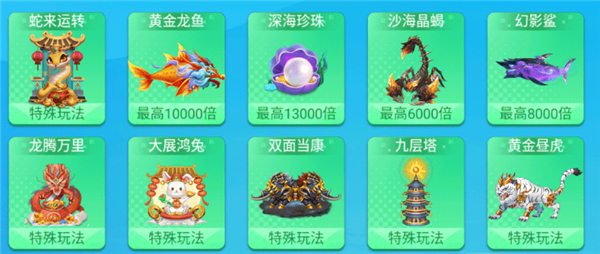 特殊鱼:拥有特殊玩法的鱼种,击杀后根据特殊玩法奖励金币
