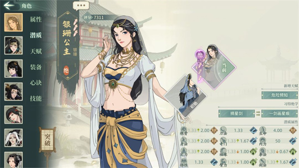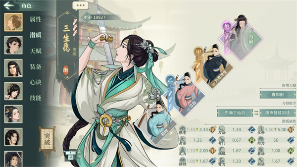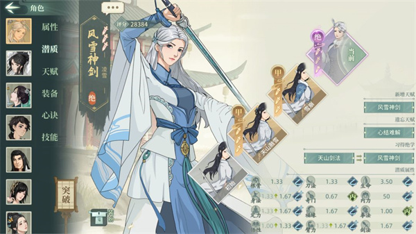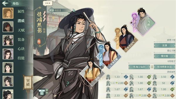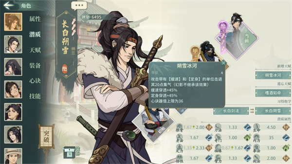 说明?:本文中所有例如00,33这类数字代表潜质武学的突破情况,第一个数字代表潜质突破,第二个数字代表武学突破,00代表解锁,33代表潜质三突武学三突