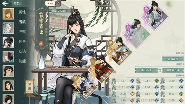 帮会割草的好手,作为输出侠客她的自带武学潇湘八剑足以应付副本帮会了,剑师姐的潇湘九剑需要单独解锁, 一般不用刻意解锁。2.0后剑师姐的潜质天赋跟心法解绑了,这让剑师姐在PVP中增强了不少,但是没有像柳妹玉真那样的回复手段,身板很脆还是很容易猝死,潜质天赋中随时序增加的闪避让剑师姐一般都走闪避路线,但这让她的养成成本大大增加。