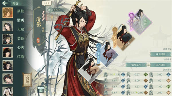 抽卡推荐:13起步(潜质1突武学3突,后文不再详述)