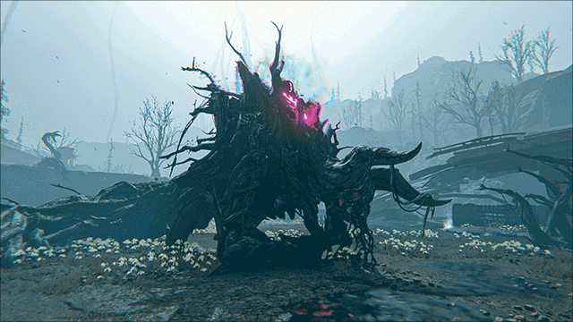 上位者孽生妖树寄宿于巨楔BL155E内部的阿米特级裂隙空间。现存目击记录表示,裂隙空间内为于2046年无故消失的萨莫维尔镇遗址的异空间变体。内部空间表现整体宁静,时有局部重力场减弱现象发生。上位者孽生妖树行动较为缓慢,但其星尘能量会聚集成具有极强攻击性的类藤蔓组织。需要注意其背部的人形部分。