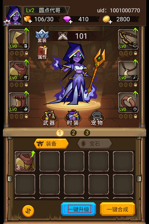 5、玩家可以给角色穿戴装备,这些装备都可以进行升级提升,增加战斗力。