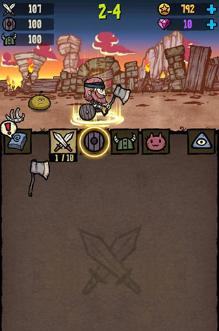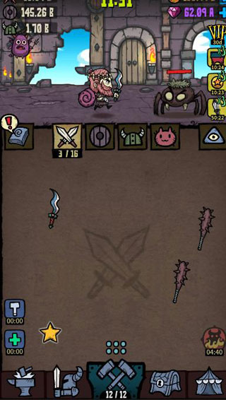 6、游戏上面的资源和重要,不定期的会有鸟飞过(点击鸟重要资源),第二个就是打造装备的时候会送紫宝石。升级尽量强化勇士升级,点击打怪获得更多金币的,有了金币强化人物属性,最后再去合成强化里面,强化点缩短打造时间。