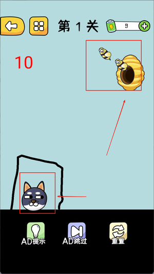 3、倒计时结束,小狗没有受伤即可通关。