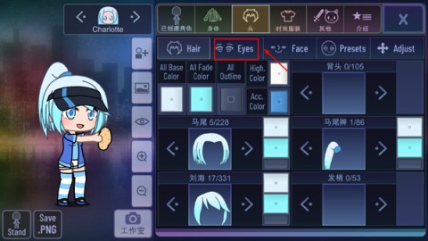 2. 随后点击“Eyes”(眼睛)选项,着手挑选角色的眼睛。