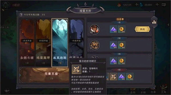 1. 揽星天阶中,可供挑战的元素塔一共有五座!