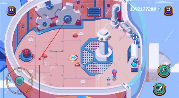 3、进入游戏后左边轮盘是控制角色前后左右移动的