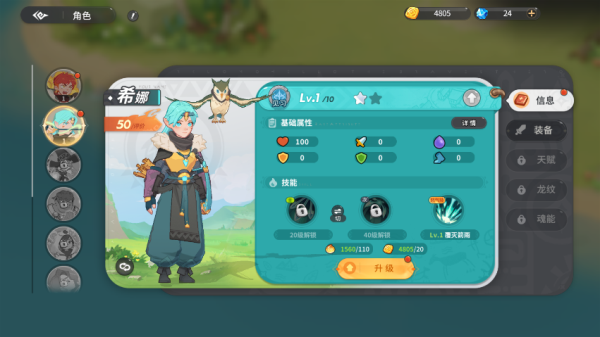 4、获得经验后点击左下角的角色可以对角色升级或者提升技能等级。