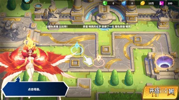 2. 依照新手引导教程指示,在特定光圈区域里点击屏幕,以完成英雄的部署。