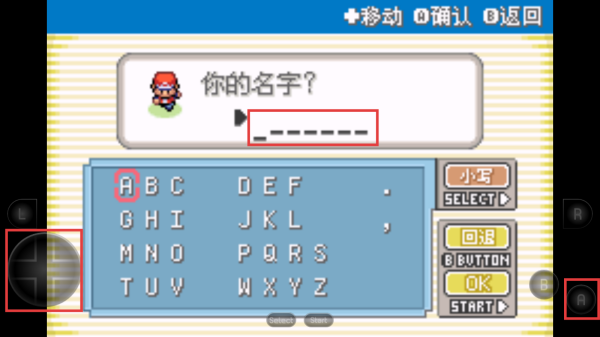 1、打开游戏,点击十字键切换字母,点击【A】确认输入,输入完名字后选择【OK】再点击【A】即可。