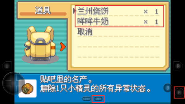 3、获得道具后,点击【Start】可以打开背包,使用或查看道具效果。