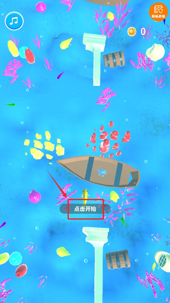 1、点击屏幕上的“点击开始”按钮,进入游戏并准备开始你的海底探险之旅。