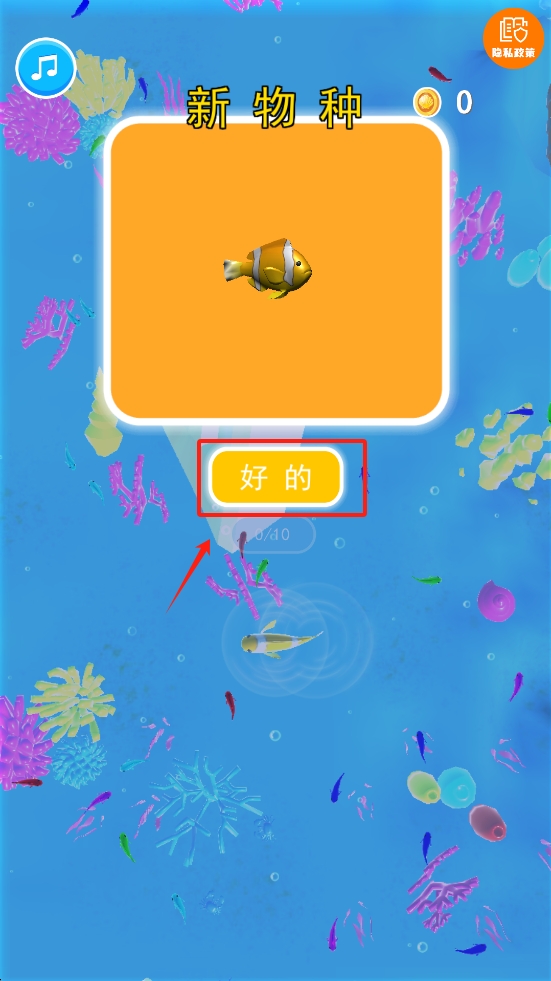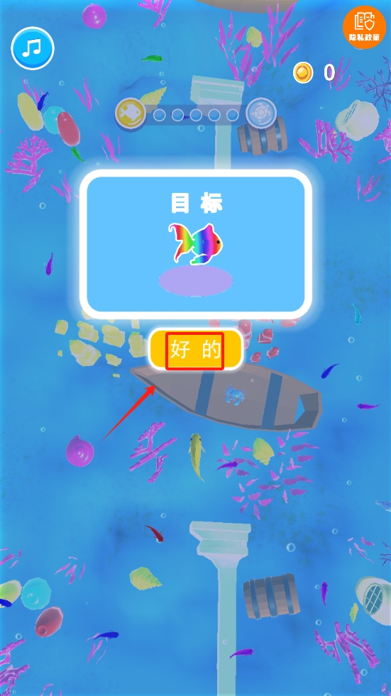 2、查看目标提示并点击“好的”按钮,确认你将要捕捉的海洋生物。