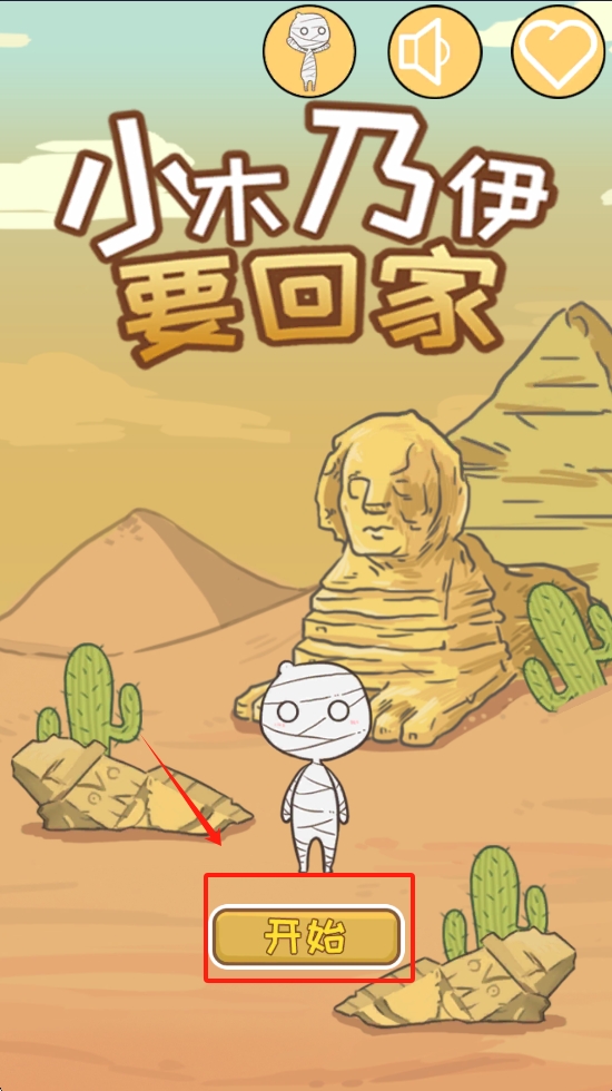 1、点击主界面上的“开始”按钮,进入游戏,开始帮助小木乃伊的回家之旅。