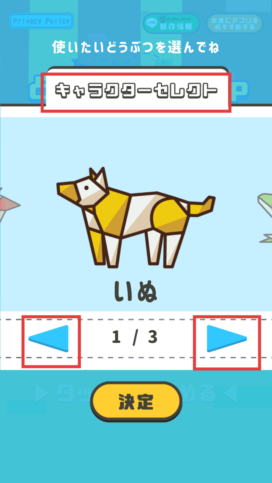 1、在(角色选择)界面,通过左右箭头切换角色,选好后点击【決定】确定。