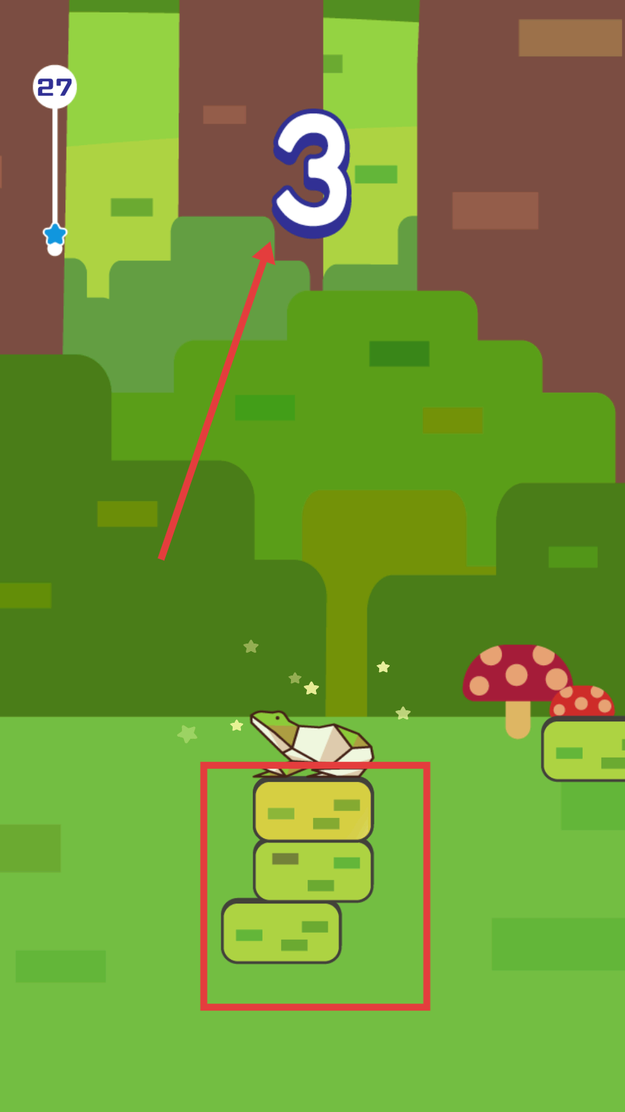 2、游戏中控制角色在堆叠方块上跳跃,注意上方数字变化,确保跳跃准确。