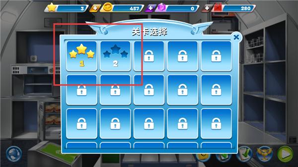 4、选定目标机场后进入关卡列表,通过滑动浏览并选择相应难度关卡即可开始烹饪挑战,获得胜利。