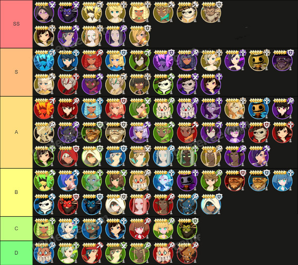 2、玩家可以参考上图的节奏榜对照着角色来参考,目前最强的就是SS系列的角色了。