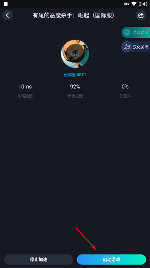 2、等待加速完成,点击启动游戏;