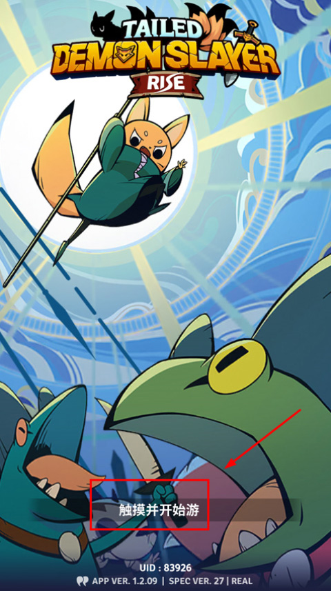 1、打开有尾的恶魔杀手崛起官方版,即TDS : RISE,游戏需加速器启动,点击屏幕开始游戏;