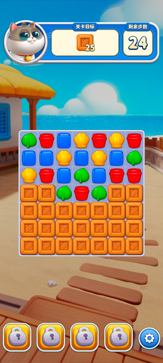 《假日乐消消》头牌心灵理疗师是一只名叫毛毛的猫咪,无论闯关还是建造,它都陪伴左右——欢呼鼓励、傲娇卖萌,又或是调皮捣蛋。消除闯关,即可与它亲密互动。