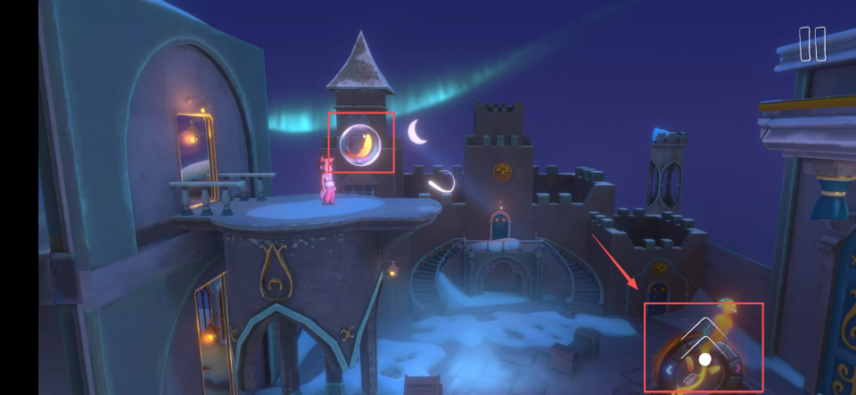 1、面对飘浮平台,操控能吸引元素的双子牵引平台,为另一位角色创造安全移动通道。