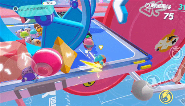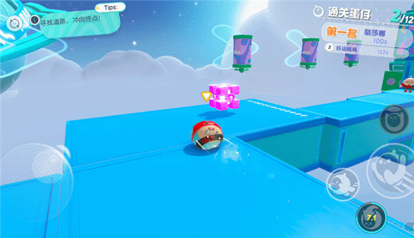 1、经典闯关模式 采用多轮淘汰制,前几关比拼速度与技巧,最终关卡考验生存能力,需灵活运用跳跃、滚动与道具干扰对手。