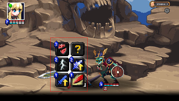 5、对战敌人,可以点击远程攻击角色头像,选择下拉所需技能;