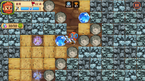 3、在挖掘的过程中可以收集能量,千万不要等到你的鹤嘴锄损耗坏掉,这时就不能再移动了。
