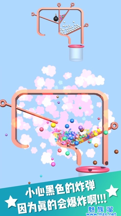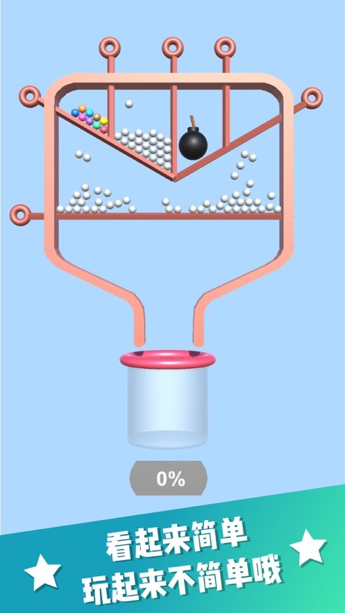 1、最终需要将所有的五彩缤纷球球掉落瓶子中,一个也不能少的。