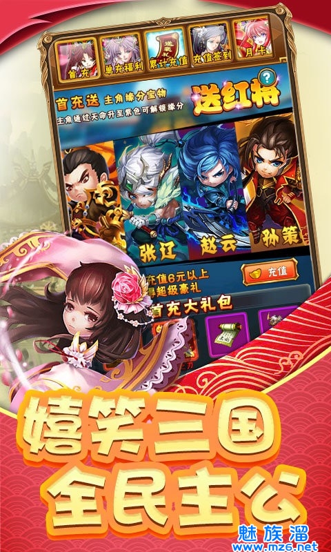 2、首日七天活动,爽拿500连充,红色极品武将随便玩;