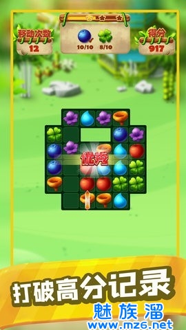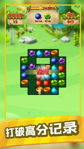 主要任务是收集铃铛,铃铛只会掉落在棋盘上,我们在开始的时候,就直接寻找机会,用特殊的水果来消除。