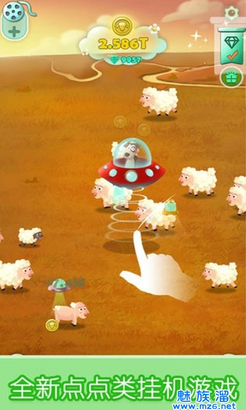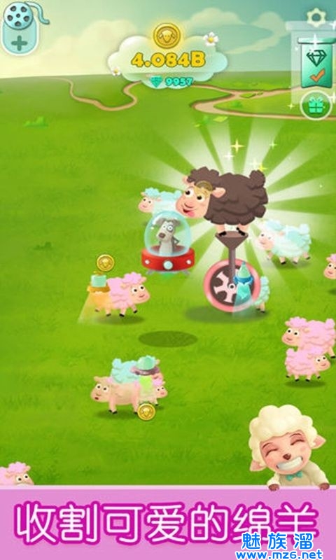3.这是一款绝对轻松好玩的点击挂机的游戏,和小绵羊一起努力赚金币。