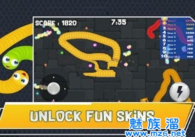 规则:如果您的头部与另一个最大的蠕虫io对手碰撞,您将被砸碎,破裂,然后迷失方向! 。但是,如果您包围其他蛇,那么您将消除它们并可以吃掉它们!