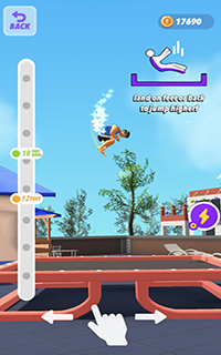翻转国王游戏是一款非常好玩的休闲类游戏。玩家在这款游戏中会完成一系列的高难度蹦床动作,玩家可以通过完成这些动作来获取更多的分数,难度系数越高的动作分数就越高,但是玩家必须完成动作才能获得分数,一旦失败就无法获得分数。感兴趣的玩家就快来下载吧。