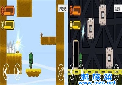 3、不断跳跃躲避出现的障碍物以及各种陷阱,不要让外星人摔倒,否则游戏将直接结束。
