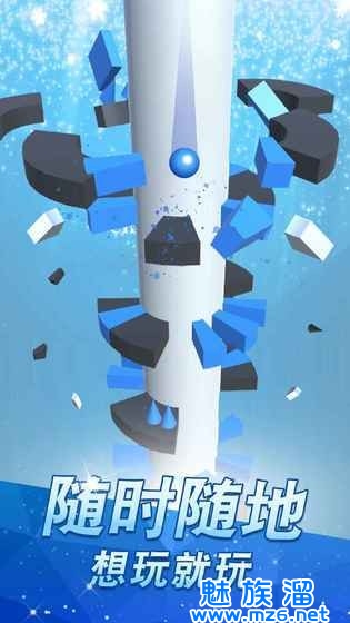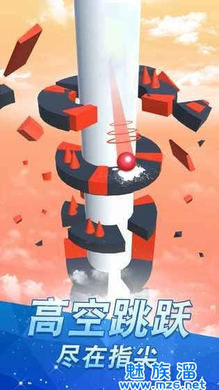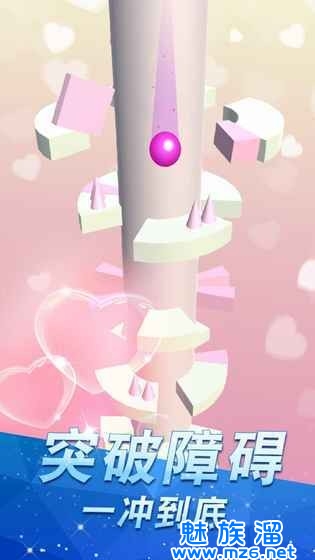 【游戏玩法】手指滑动屏幕,左右旋转柱子来让小球尽情旋转坠落,冲破障碍落,穿过层层障碍挑战高分极限;