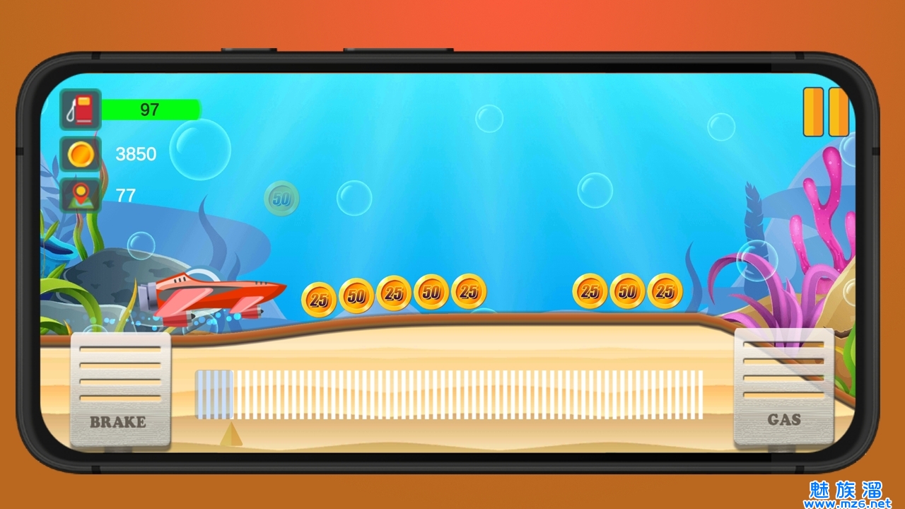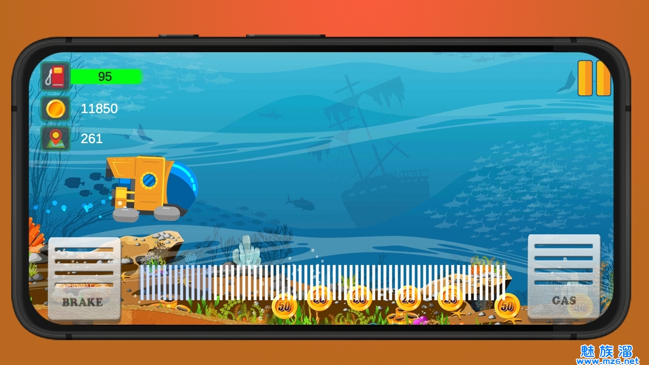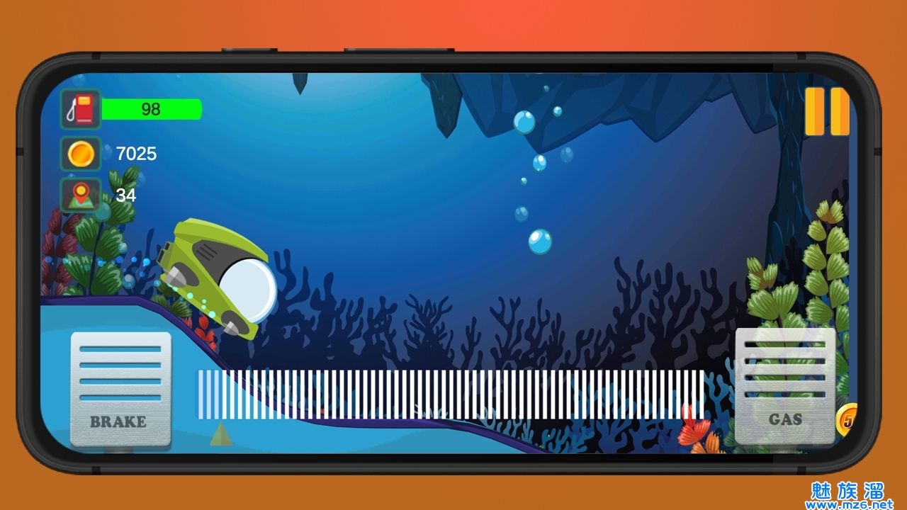 可让您有机会驾驶汽车,同时探索海洋深处的美丽。游戏的目标是在到达终点线的路上收集硬币。请注意有限的时间,并避免潜水艇用完燃料。您可以在各种地图上爬山。收集硬币时,您可以解锁地图并购买新车。此外,您可以升级车辆以更轻松地爬坡。