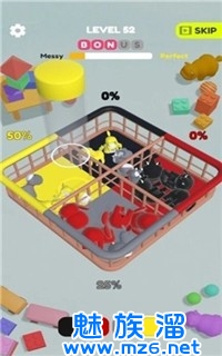 动物捡起来是一款卡通风格的游戏,玩家在游戏中需要用一个非常具有吸力的瓶子,把所有的玩具装起来,类似抓娃娃机的原理,但是这款游戏题材新颖,操作起来具有一定的难度,因为不仅仅是抓起来那么简单,你还需要根据筐的颜色对娃娃进行颜色分类。