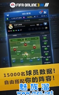 包含15000名来自30多个联赛、40多个国家队以及各国俱乐部的真实球星信息。