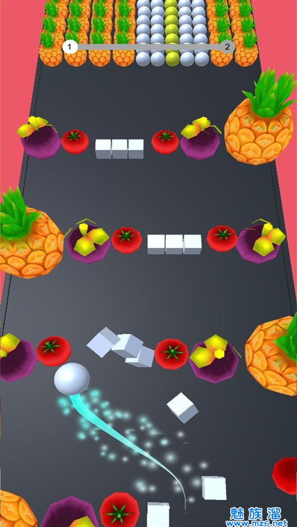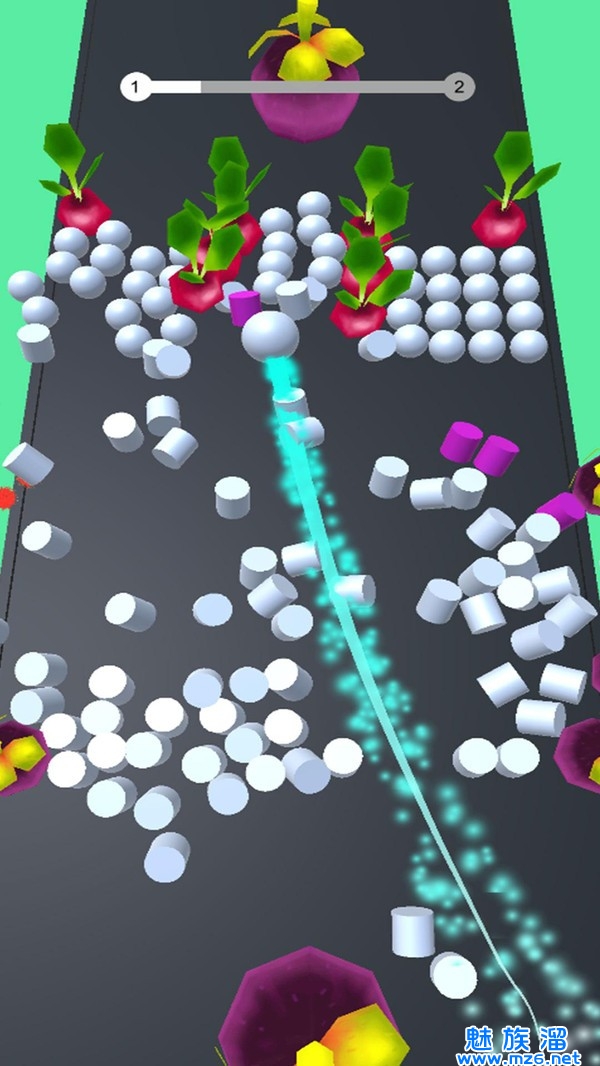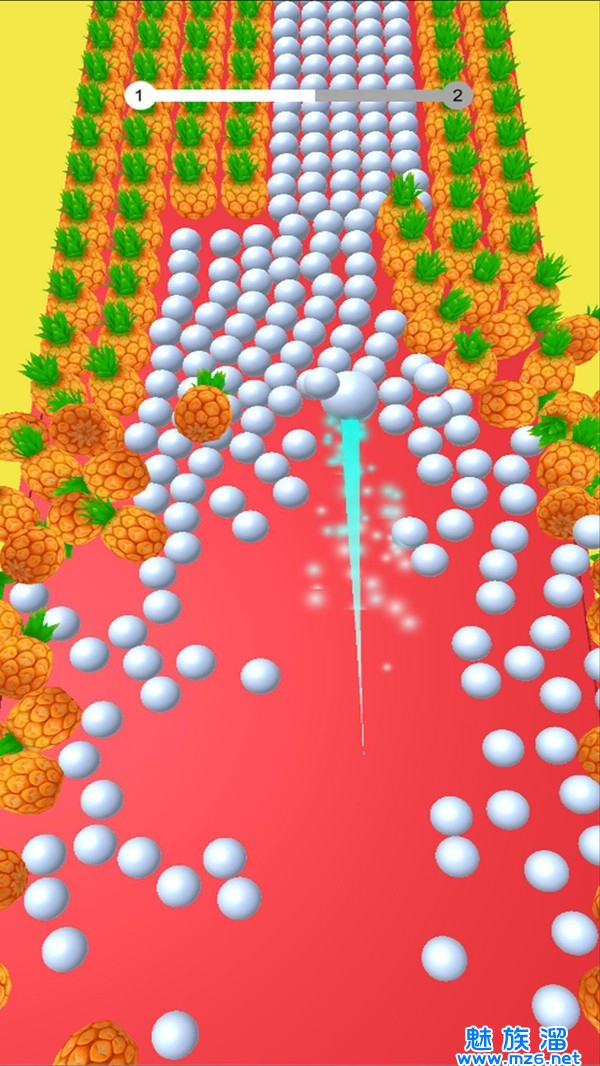 2、通过滑动屏幕操控球球的运动;