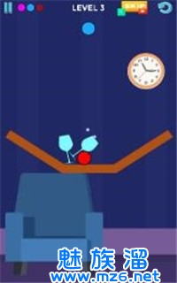 1.找到使球掉落的最佳角度,并观察红酒杯的放置。