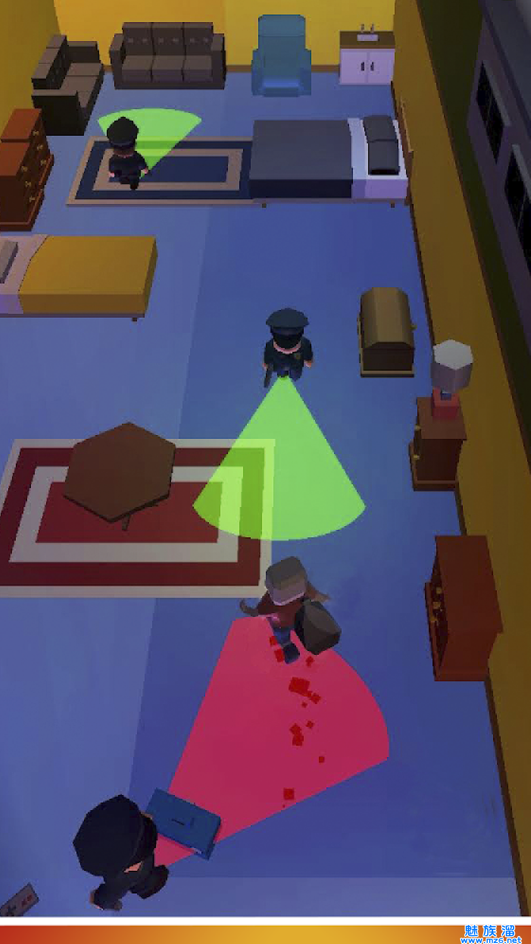 4、保安巡逻次数会越来越多,游戏中的玩家需要十分小心,躲避视线。