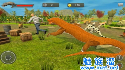 3、亚洲巨蜥需要躲避猎人的追击,遇到凶狠的鳄鱼你需要想办法战胜它。