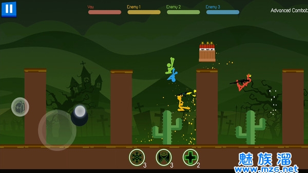 - 游戏中胜利的判定严格按照最后一个死掉或掉出屏幕的人,结合地图上奇怪的机关和武器,极其容易出现反转,不到最后一秒往往猜不到结局。