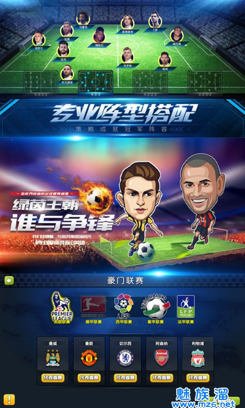 参加世界上最重要的足球比赛:足球明星联赛,足球明星杯,欧洲冠军联赛,英超联赛,大联盟足球......欧洲冠军联赛,亚洲杯并带领你的球队登上足球比赛之巅